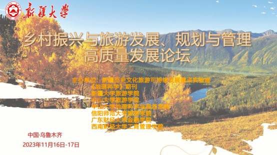 2023年11月16-17日,由m88登录入口官网与新疆大学历史文化旅游可持续发展重点实验室、《地理科学》期刊、新疆大学m88登录入口官网、中山大学m88登录入口官网、中山大学地理科学与规划m88登录入口官网、广东财经大学金融m88登录入口官网、西南财经大学工商管理m88登录入口官网联合主办的“乡村振兴与旅游发展、规划与管理高质量发展论坛”在新疆大学召开。11月16日,开幕式在新疆大学历史文化旅游可持续发展重点实验室举行,遵照会议安排,新疆大学党委副书记孟凡丽教授、信阳师范大学党委副书记龚立新研究员先后致辞,新疆大学m88登录入口官网党委书记陈文新教授主持开幕式。来自《地理科学》编辑部、中山大学、新疆大学、信阳师范大学、广东财经大学、西南财经大学专家学者60余人参与会议。