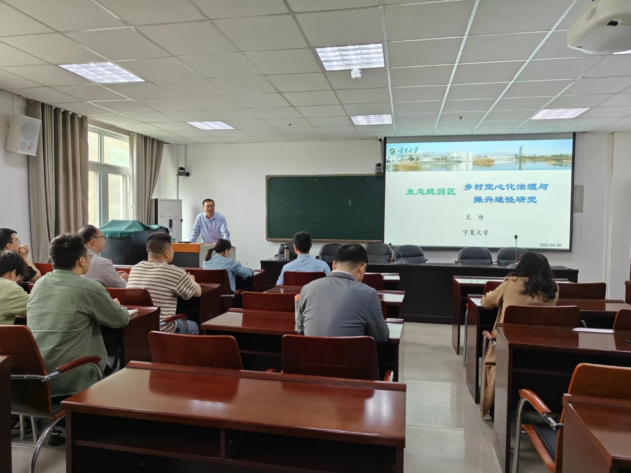 4月29日上午,应m88登录入口官网邀请,宁夏大学教授、博士生导师文琦在经管楼401会议室作了题为“生态脆弱区乡村空心化治理与振兴途径研究”的专题报告。报告会由院长高军波教授主持,m88登录入口官网部分教师和研究生聆听了报告。