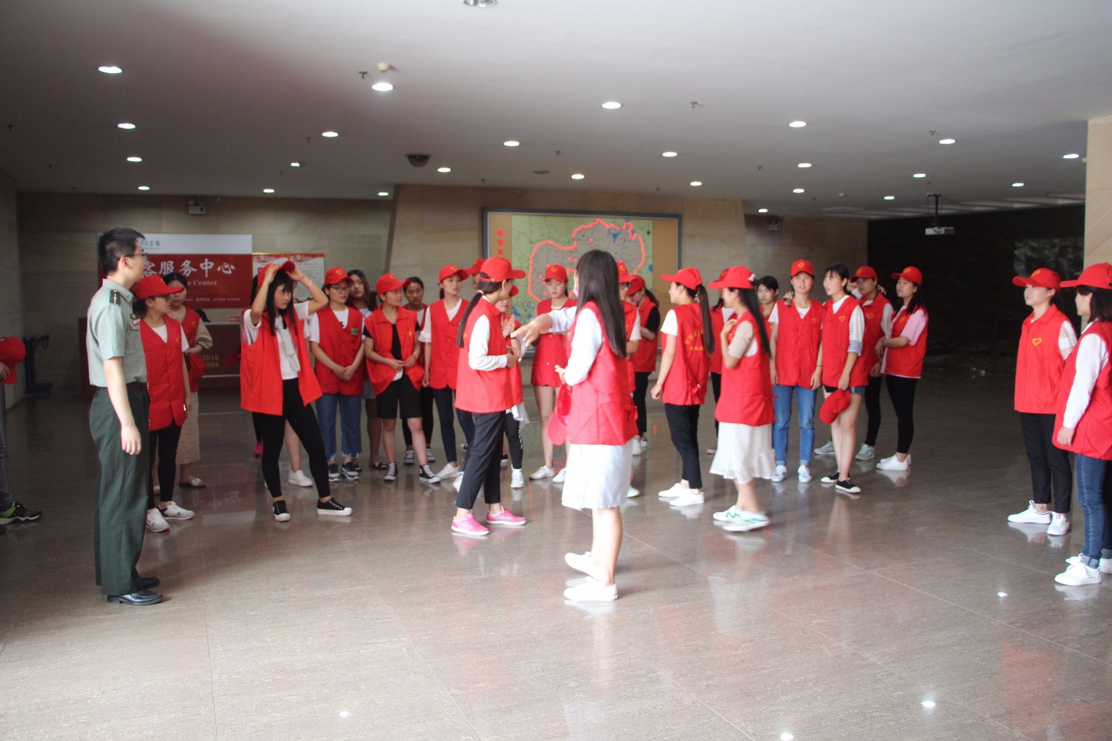 活动共分为鄂豫皖革命纪念馆志愿服务、旅游知识讲解及微博三个主题。5月19日,m88登录入口官网积极组织学生代表赴鄂豫皖革命纪念馆参与馆内的志愿服务活动。36名学子参加此次志愿服务队。志愿者步行至鄂豫皖革命纪念馆前进行集合,每人穿戴了红色志愿服及志愿帽并组织有序的进入馆内。随后在馆内工作人员的指导和协调下,志愿者根据志愿活动内容每人坚守七个展厅的各个陈列台前、门口或危险地方,负责馆内不文明行为的制止和范围内对游客行为的帮助提醒。天气炎热,参观人员的增加并没有使志愿者放弃,她们依旧认真坚守自己的职责,为参观群众开门问候,微笑回答提醒游客的各种疑问行为。最终同学们的志愿服务活动得到了馆内工作人员和众多游客的一致好评,对信阳红色文化的传播起到了很好的效果。