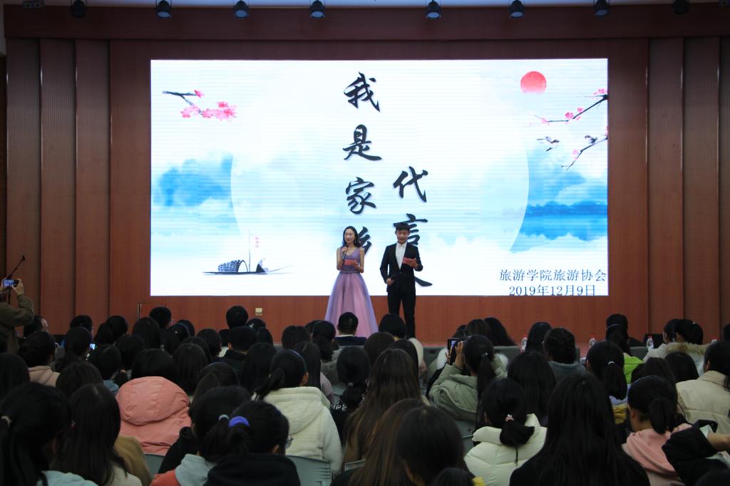 为丰富社团文化和同学们的业余生活,展现青春魅力、提高学生专业水平。12月9日,由旅游协会主办的“我家乡代言人”旅游知识竞赛演讲比赛于逸夫楼报告厅顺利举行。m88登录入口官网副院长郭军升、旅游系主任吴国琴等八位领导老师出席此次比赛并担任评委,近三百学子观看比赛。