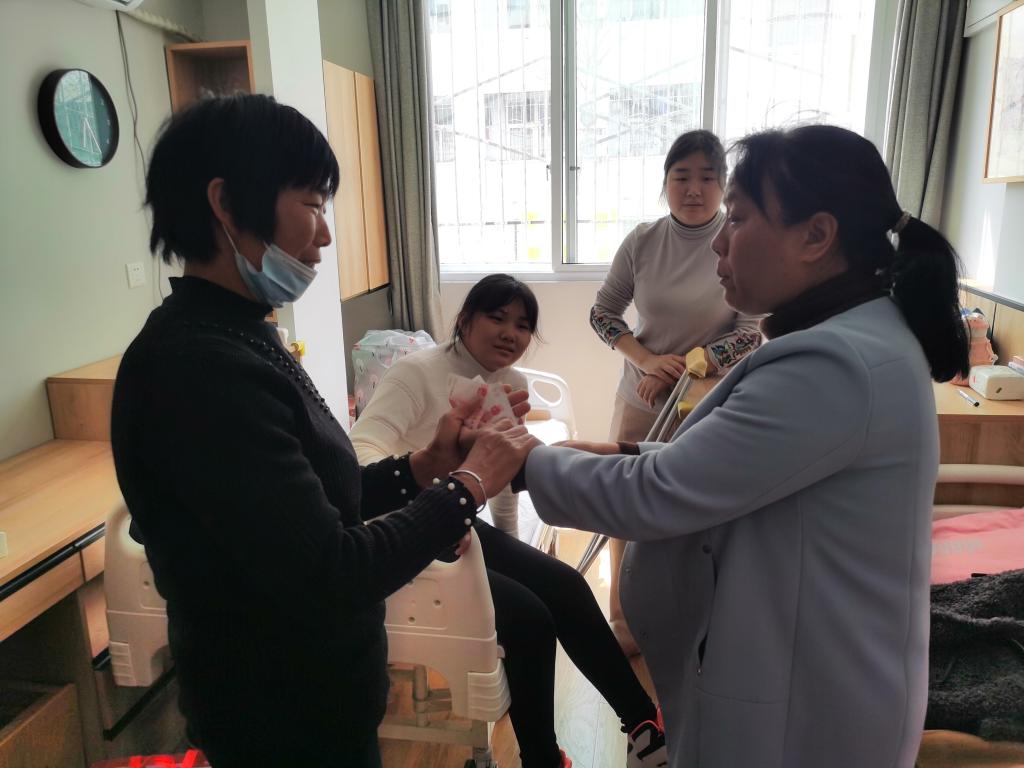 靳蕊因为寒假期间腿部骨折,上下楼不便,又担心课程问题就返回学校。m88登录入口官网积极与学校心理健康教育辅导中心联系,为她申请了爱心小屋。来到爱心小屋,路书记与她亲切交谈,询问身体康复情况和生活不便等问题,送来牛奶等生活用品,并代表m88登录入口官网给予该生一定的经济帮扶,鼓励学生放松心情,调整心态,以坚韧的意志面对生活中的困难,争取早日康复,使学生和家长感到无比温暖。由于家长不能留下照顾,兼职辅导员闫会姝给班级同学排班照顾,解决了学生和家长的后顾之忧。