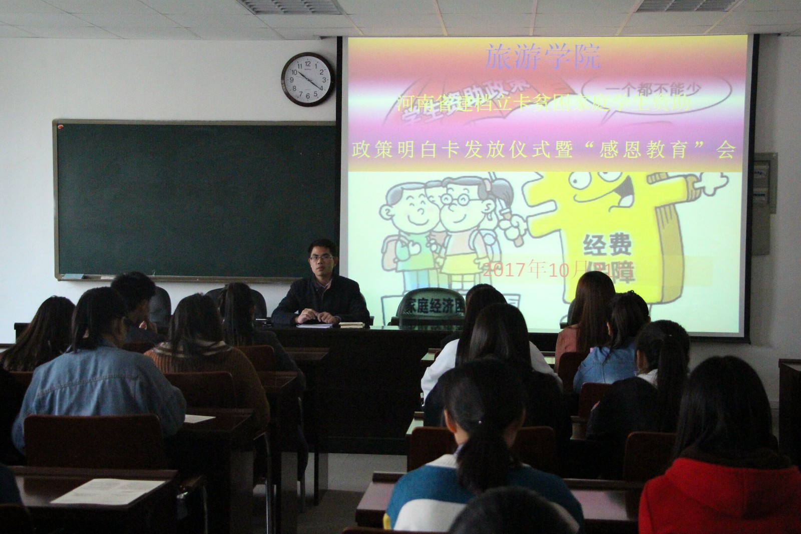 10月21号上午,m88登录入口官网于经管楼401会议室顺利举办了河南省建档立卡贫困家庭学生资助政策明白卡发放仪式暨“感恩教育”会议,m88登录入口官网助贷专员张庆敏和72名建档立卡家庭学生参加了本次会议。