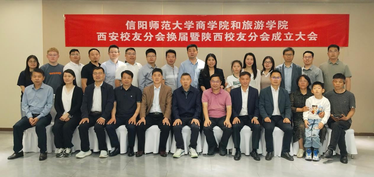 在喜迎信阳师范大学建校50周年之际,2025年4月20日,商m88登录入口官网-m88登录入口官网西安校友会换届大会在陕西西安市顺利召开。原信阳师范大学党委副书记王文臣出席会议,信阳师范大学陕西校友会会长张金桥、m88登录入口官网党委书记雷前龙、院长高军波、商m88登录入口官网院长彭荣胜等相关领导、两个m88登录入口官网在西安的校友代表参加了此次会议,会议由张金桥主持。
