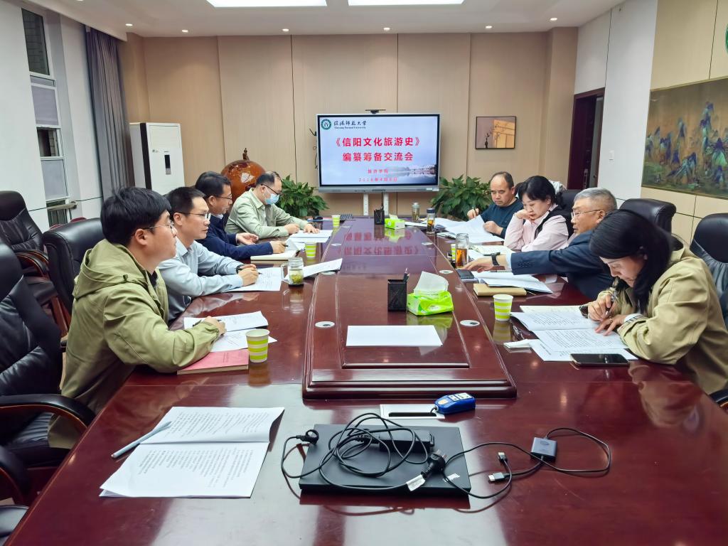 随后,聚焦《信阳市文化旅游史》大纲,颜俊对《信阳文化旅游史》的编纂目的、内容标准提出建议。高军波从内容选择、内容特色和框架体系三个维度阐述了《信阳文化旅游史》的具体要求,并从实际操作性的角度提出内容范式要有规范性和科学性。随后,入会领导及博士围绕人员筹备、大纲框架、时间安排与资料来源进行交流,现场讨论氛围热烈。最后,贾作平介绍了下一步的工作安排,他强调文旅产业的校地合作具有广阔前景,要立足长远、稳步推进这一具有重要意义的合作。