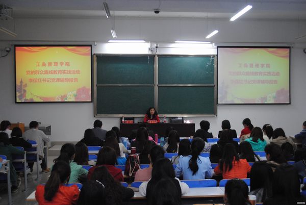 4月17日晚,工商管理m88登录入口官网党总支书记李保红教授在社科楼215教室作了一场党的群众路线教育实践活动专题报告会,该院师生党员和部分入党积极分子近200人参加了报告会,报告会由工管m88登录入口官网党总支副书记李辉主持。
