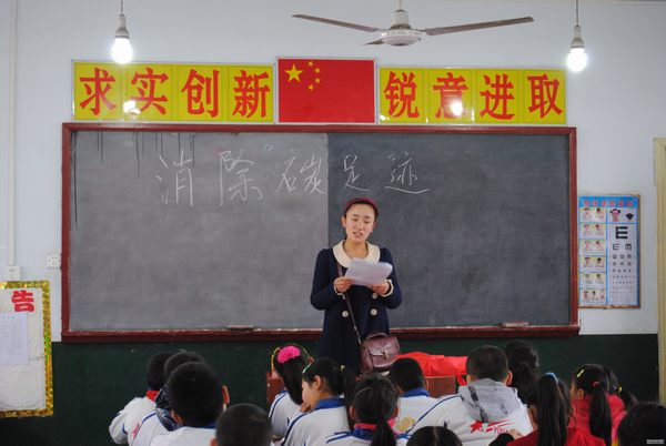 在小学工作人员的热情接待下,志愿者分成两队为三年级小学生授课。面对老师的提问,小学生们跃跃欲试,各抒己见。紧接着,志愿者对同学们进行碳足迹知识的普及,并通过问卷互动的方式累计评出生活中的环保小贴士。授课过程中,志愿者认真阐述、耐心讲解,并提倡要把环保口号切实落实到实际行动中去,参与学生积极配合、踊跃参与,现场其乐融融。随后,参与者在“地球一小时”宣传画布上签名,气氛十分热烈,同学们纷纷表示会从小事做起,保护美丽的地球。