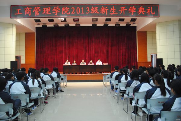 秋桂簇簇溢馨香,师生齐聚话未来。9月24日上午,工商管理m88登录入口官网2013级新生开学典礼在逸夫楼多功能报告厅隆重举行,m88登录入口官网院长曹明贵,党总支书记李保红,副院长潘国兵、彭荣胜,党总支副书记李辉和2013级全体新生一同参加了典礼。典礼由李辉主持。