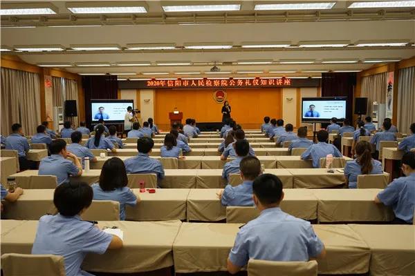 为进一步提升机关干部职工的礼仪修养和文明素质,8月12日下午,信阳市检察院邀请信阳师范m88登录入口官网m88登录入口官网旅游管理教研室副主任、副教授、高级礼仪培训师罗艳玲为机关全体干部职工作公务礼仪知识讲座。