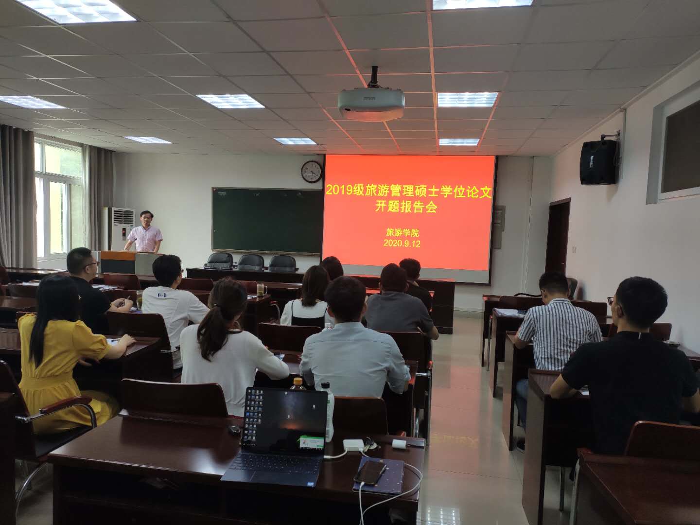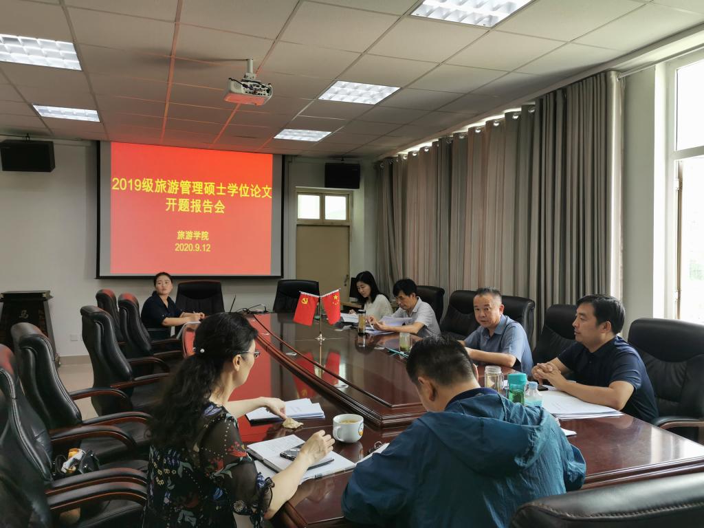 9月12日下午,m88登录入口官网2019级旅游管理硕士研究生毕业论文开题报告会分两组在经管楼401和403会议室同时举行。院长彭荣胜和党委书记曹明贵分别任两组评审小组组长并主持报告会。