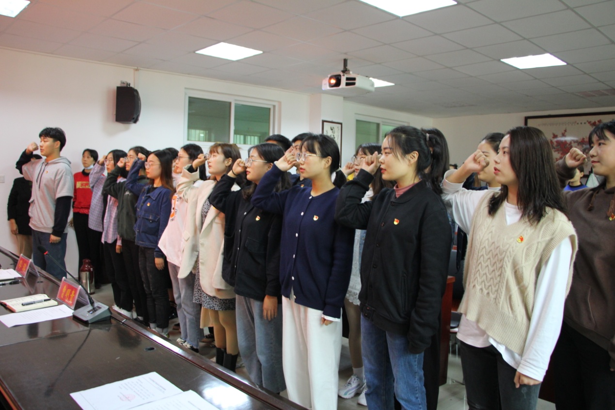受疫情影响,m88登录入口官网党委预备党员入党宣誓大会推迟至10月14日下午,在经管楼401举行。m88登录入口官网党委书记曹明贵、副处级辅导员路璐、学生党支部书记郑征、专职组织员闫会姝和m88登录入口官网全体学生党员及入党积极分子参加此次会议。会议由路璐主持。