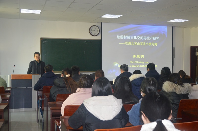 12月16日,应m88登录入口官网邀请,华中师范大学李星明教授在经管楼401和403分别作了题为“旅游村镇文化空间再生产研究——以湖北英山茶香小镇为例”“科研项目申报中的关键问题思考”的学术报告。报告会由m88登录入口官网院长彭荣胜主持,m88登录入口官网部分师生聆听了报告。