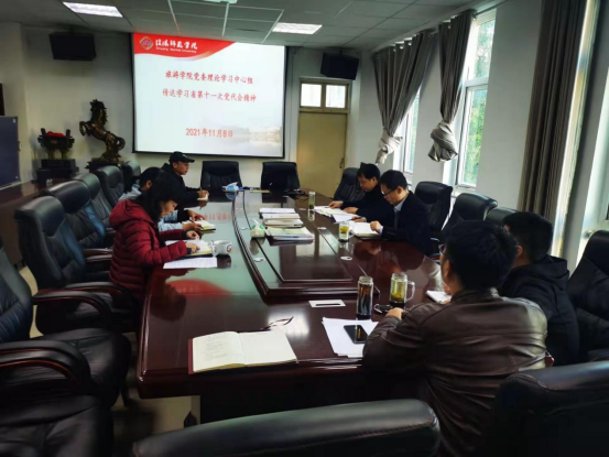 11月8日,m88登录入口官网党委理论学习中心组在经管楼404召开专题会议,传达学习省第十一次党代会精神。m88登录入口官网党委理论学习中心组全体成员参加了此次会议,会议由院党委书记雷前龙主持。