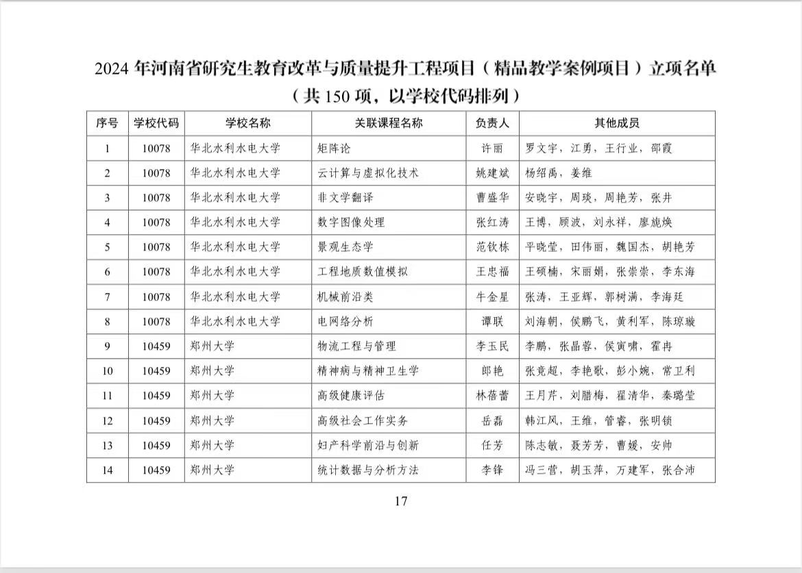 近日,河南省教育厅公布了2024年河南省研究生教育改革与质量提升工程项目立项名单,旅游m88登录入口官网2个项目获批立项。