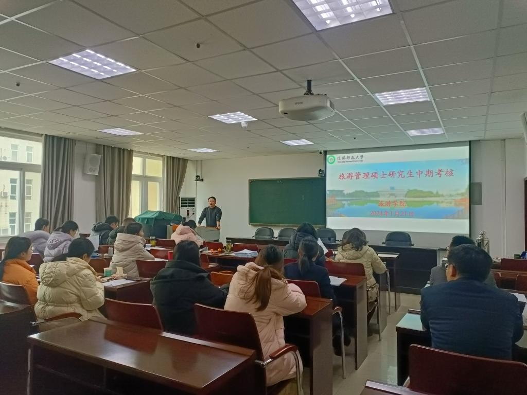 1月21日下午,m88登录入口官网旅游管理硕士研究生中期考核分两组在经管楼401和404会议室同时进行。本次考核由高军波教授和李明伟副教授担任组长,考核评委由校内导师8人组成。