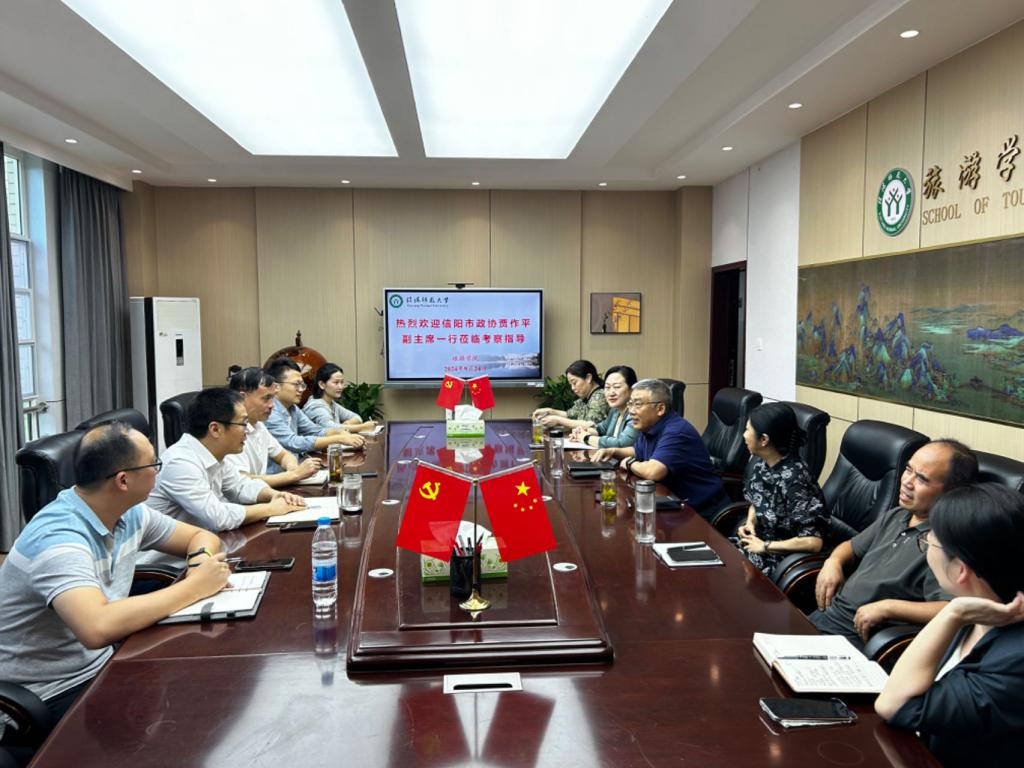 9月25日,信阳市政协副主席贾作平、信阳市文化广电和旅游局局长任俊、副局长贝娟以及市政协文史委熊凌翔主任、何军主任等一行莅临m88登录入口官网,交流信阳市文旅发展工作。信阳师范大学商m88登录入口官网院长彭荣胜、m88登录入口官网院长高军波等参加座谈会,座谈会由高军波主持。